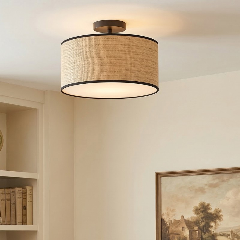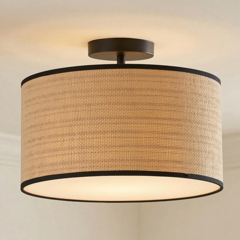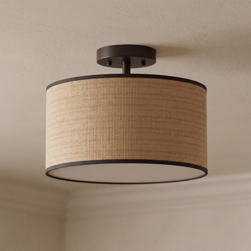 James Rustic Drum Woven Flush Mount Ceiling Light