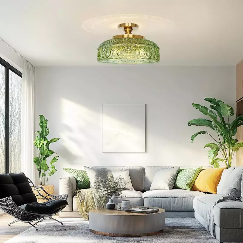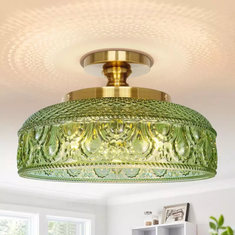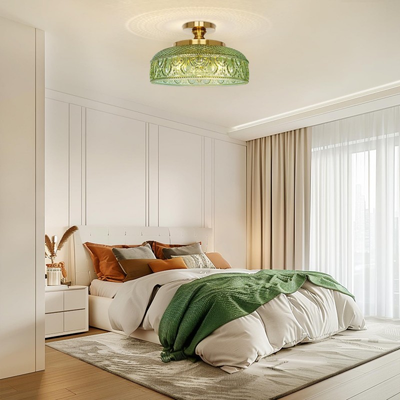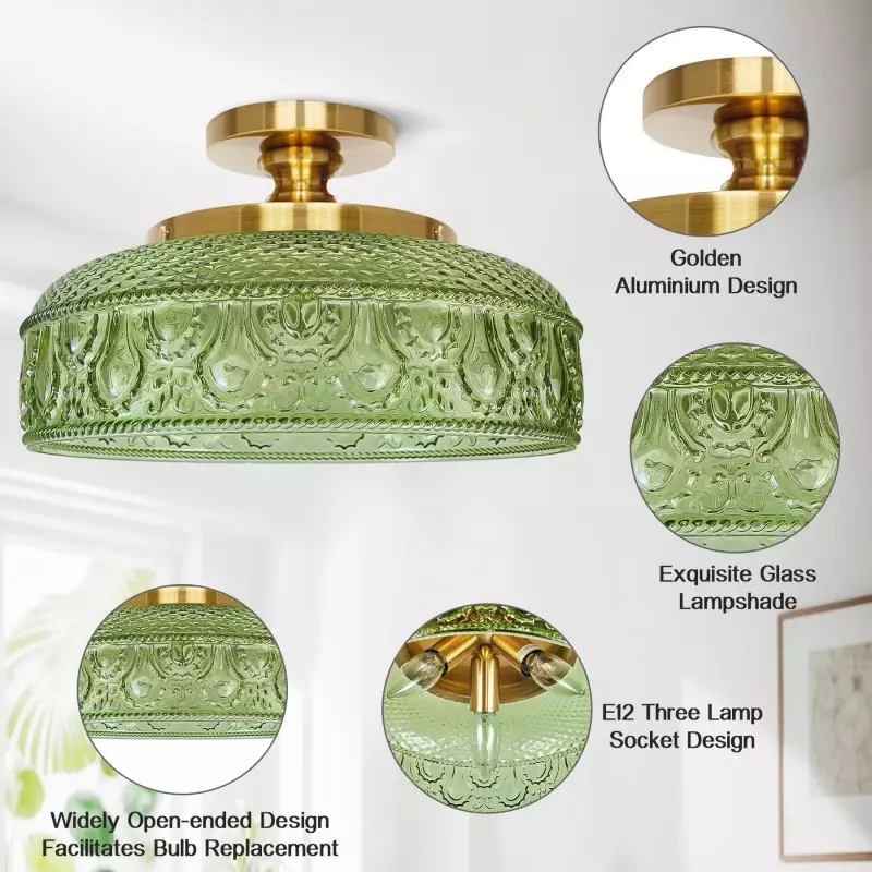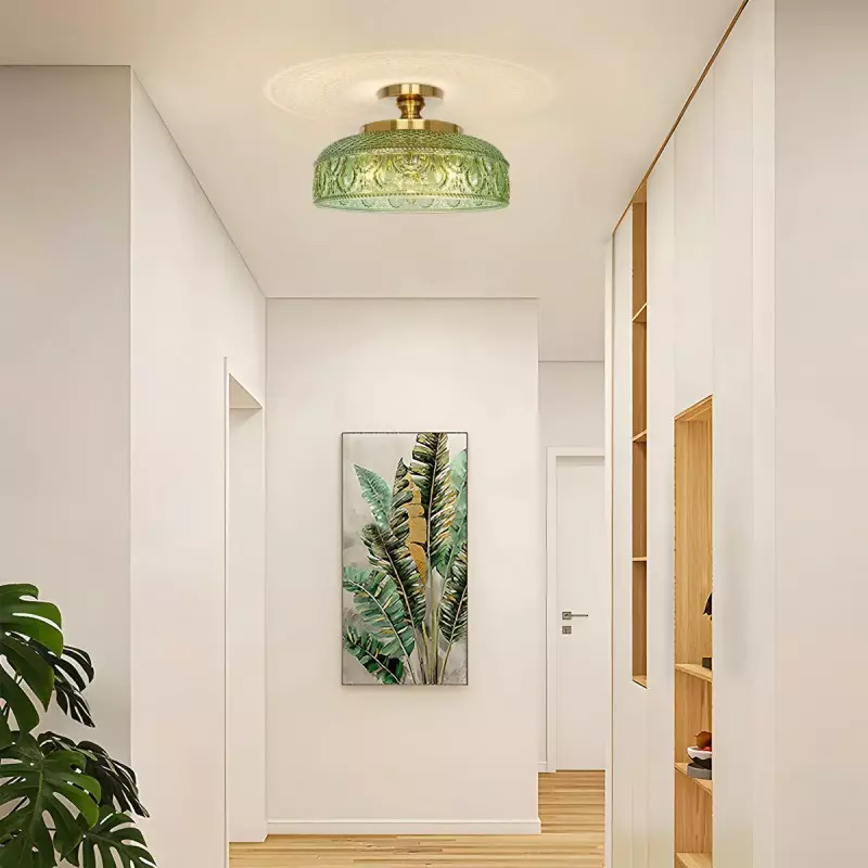 Santos Vintage Hand Carved Floral Clear Glass Semi Flush Mount Ceiling Light