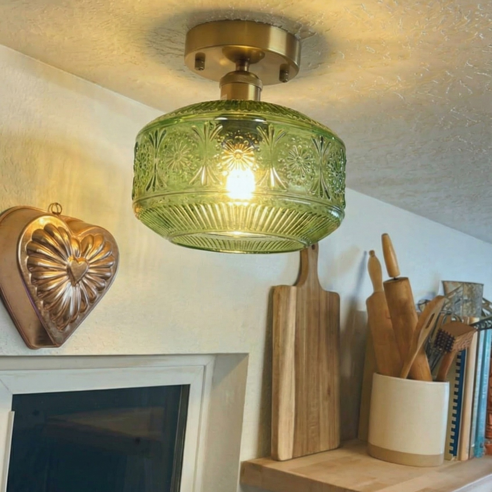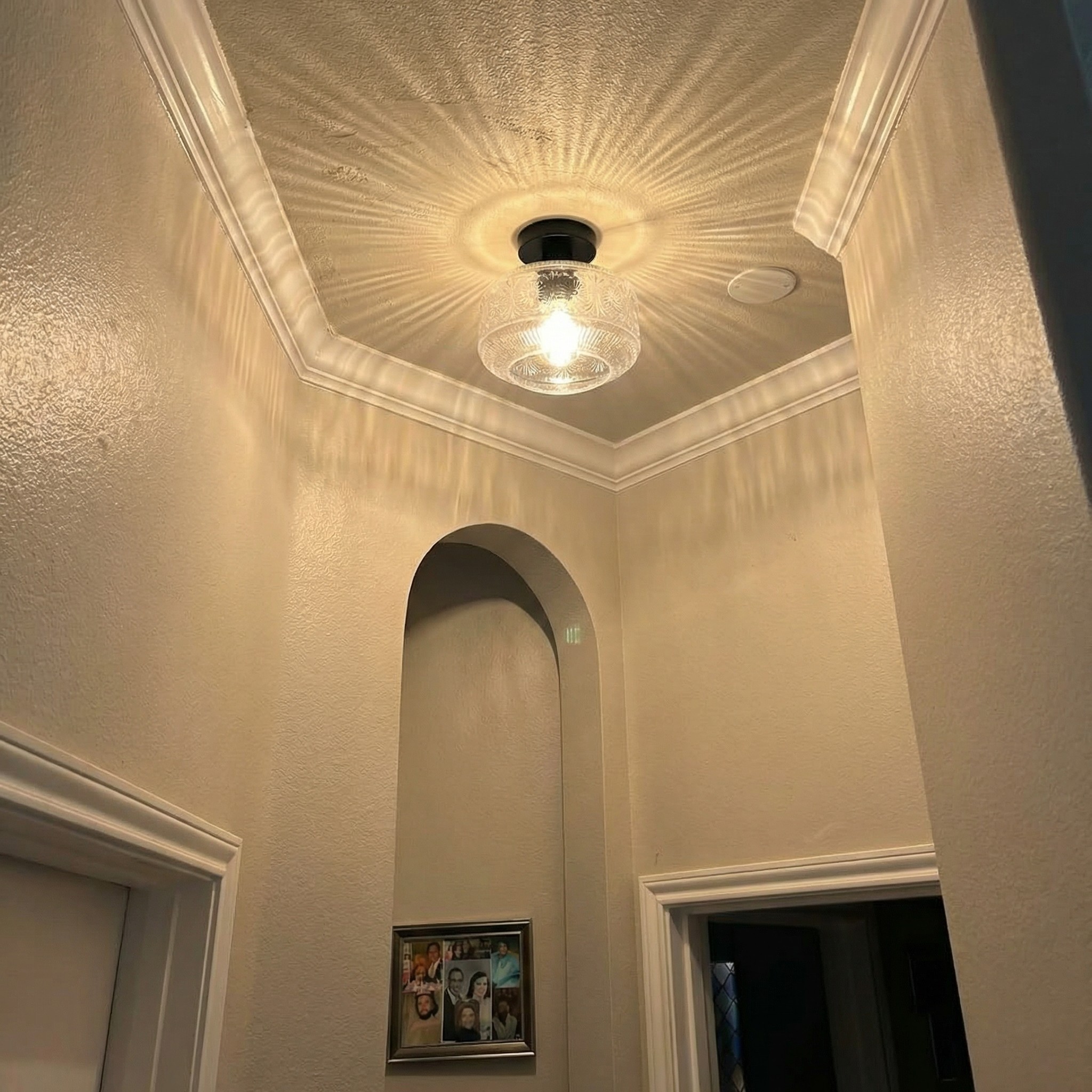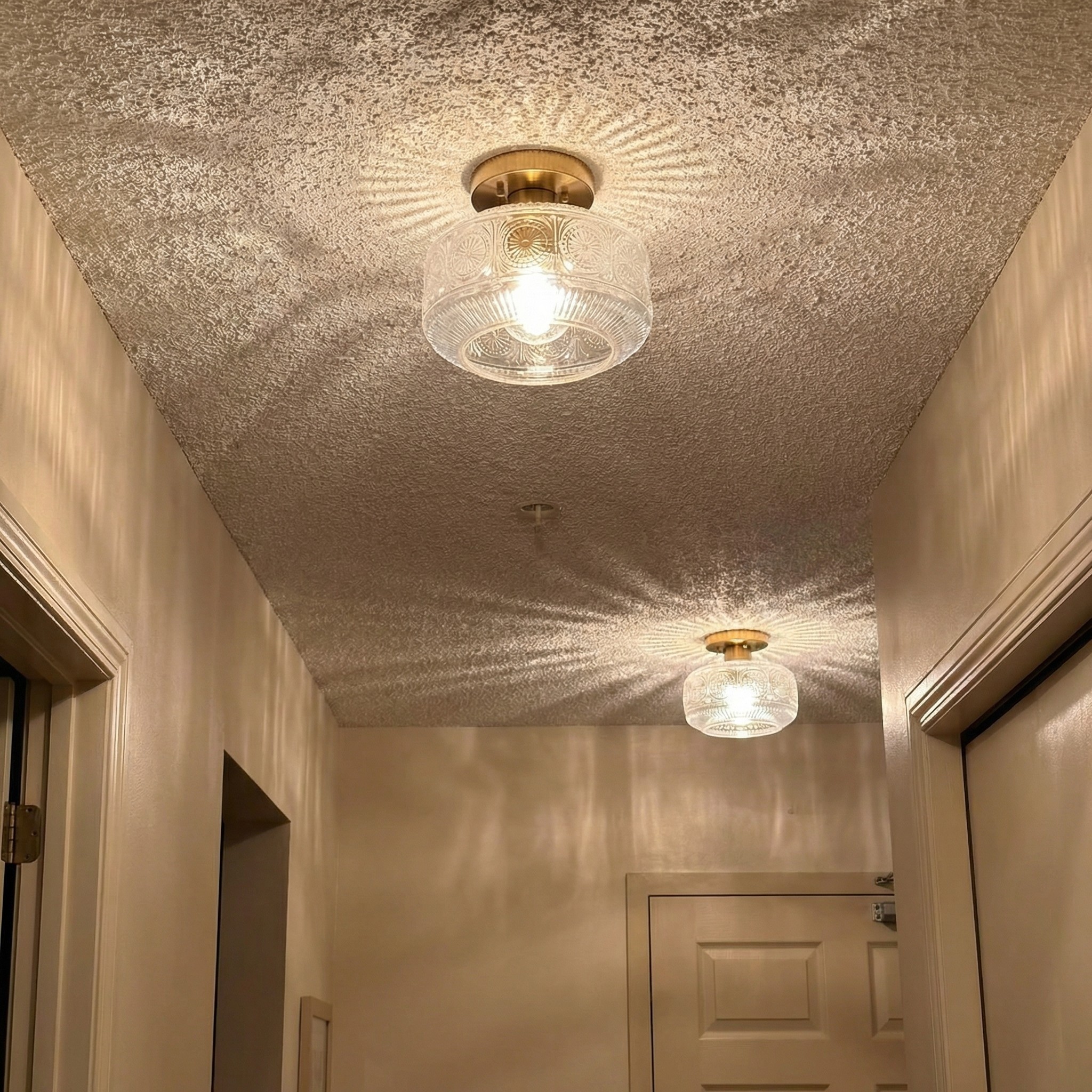 This semi flush mount ceiling light with an exclusive delicate clear glass shade on a vintage base is perfect for hallways, entrances, porches, utility rooms, stairwells, kitchens, closets, children's rooms, dining rooms, bedrooms, living rooms, and also for commercial venues: bars, cafes, hotels and restaurants!