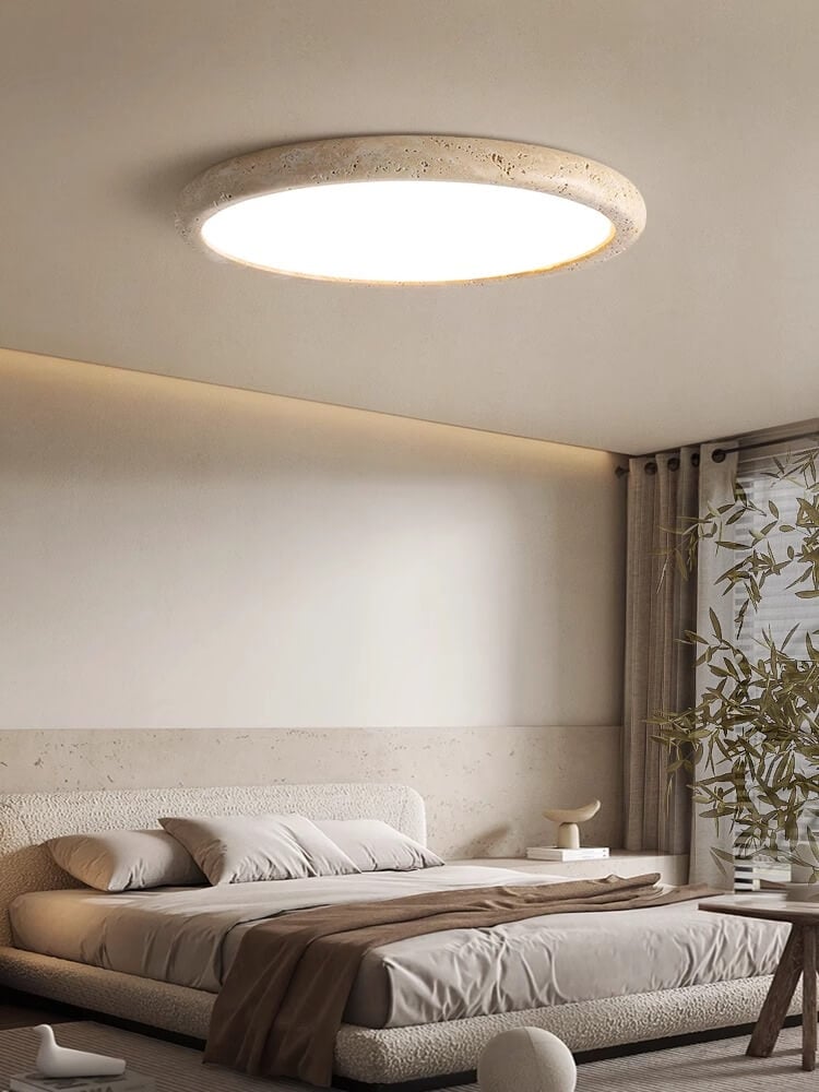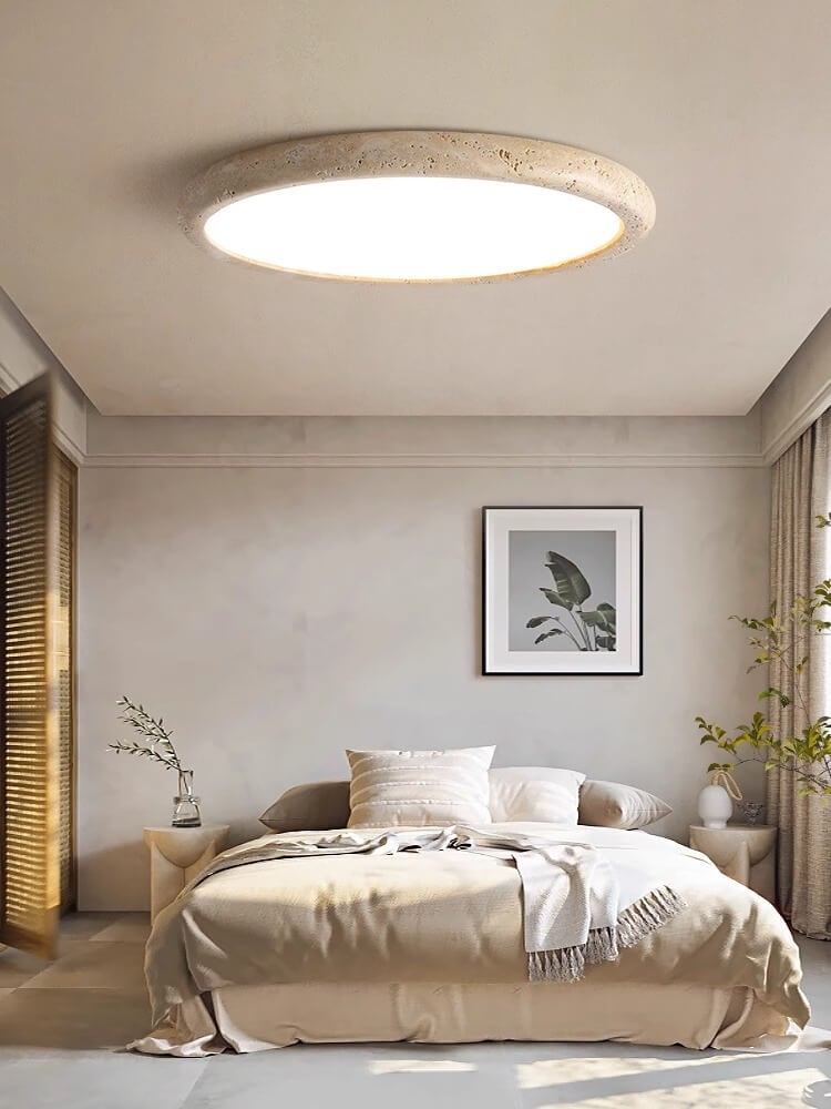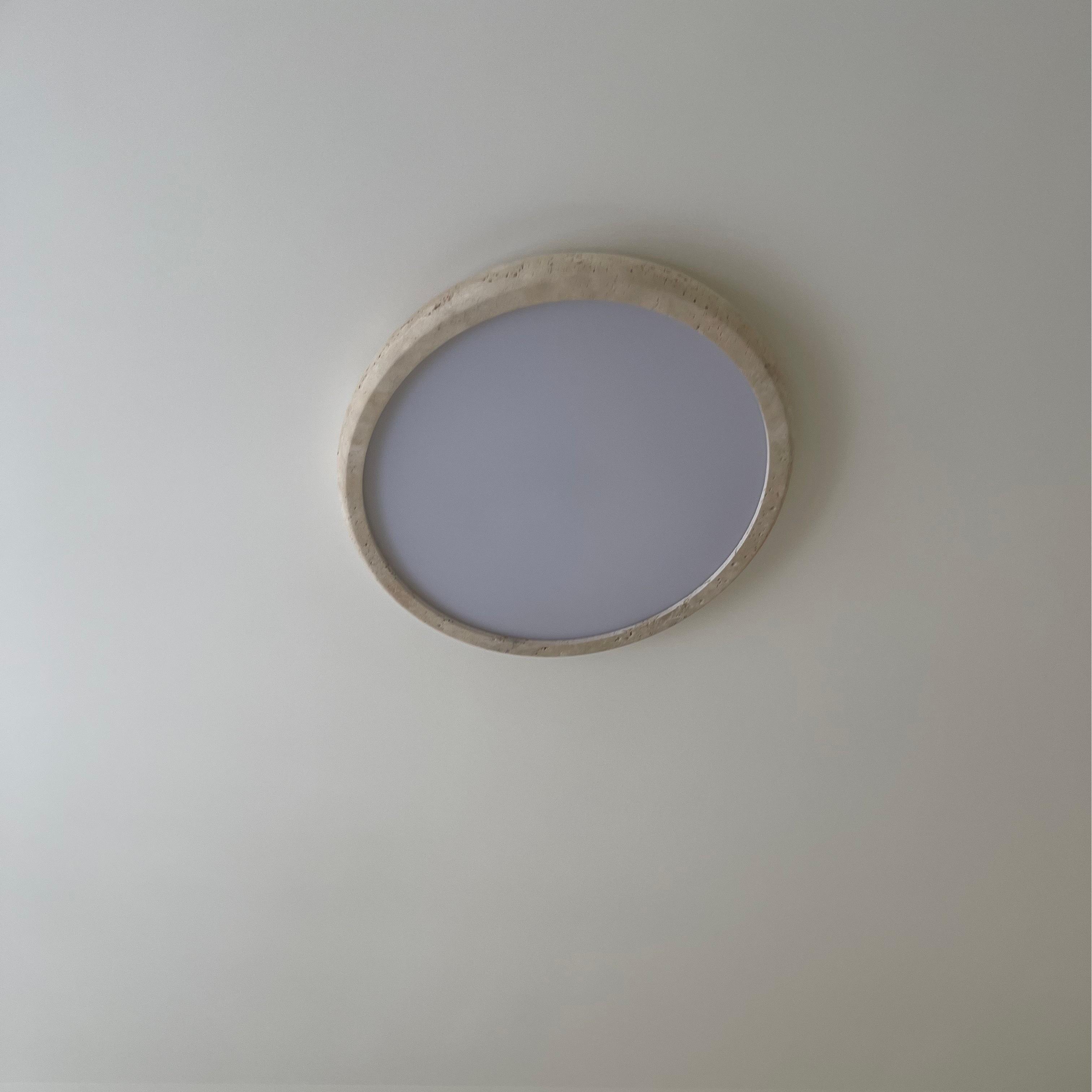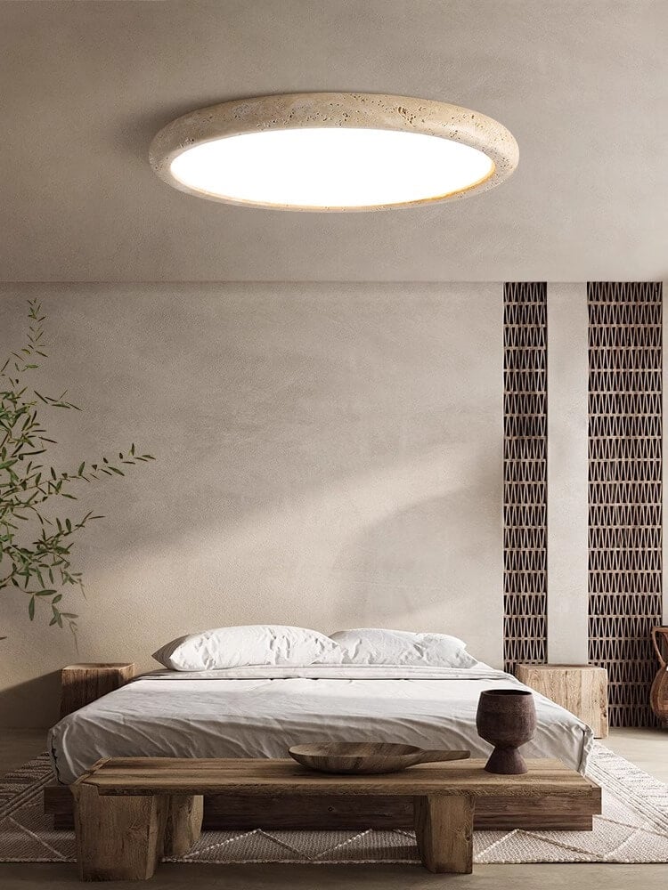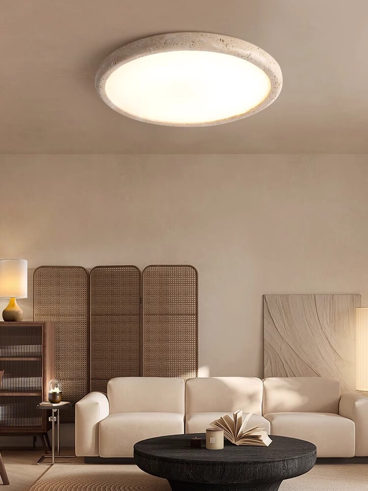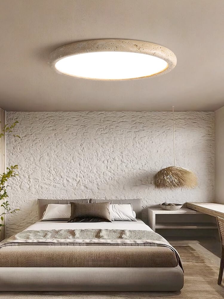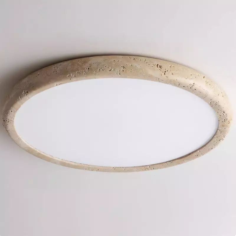 Discover our Modern Travertine Frisbee LED Ceiling Light! Shaped like a flying disc, it features light beige travertine. This Japanese - style round fixture emits a warm beige light, perfect for bedrooms, dining rooms, and living rooms. It combines aesthetic appeal with energy - efficient LED tech.