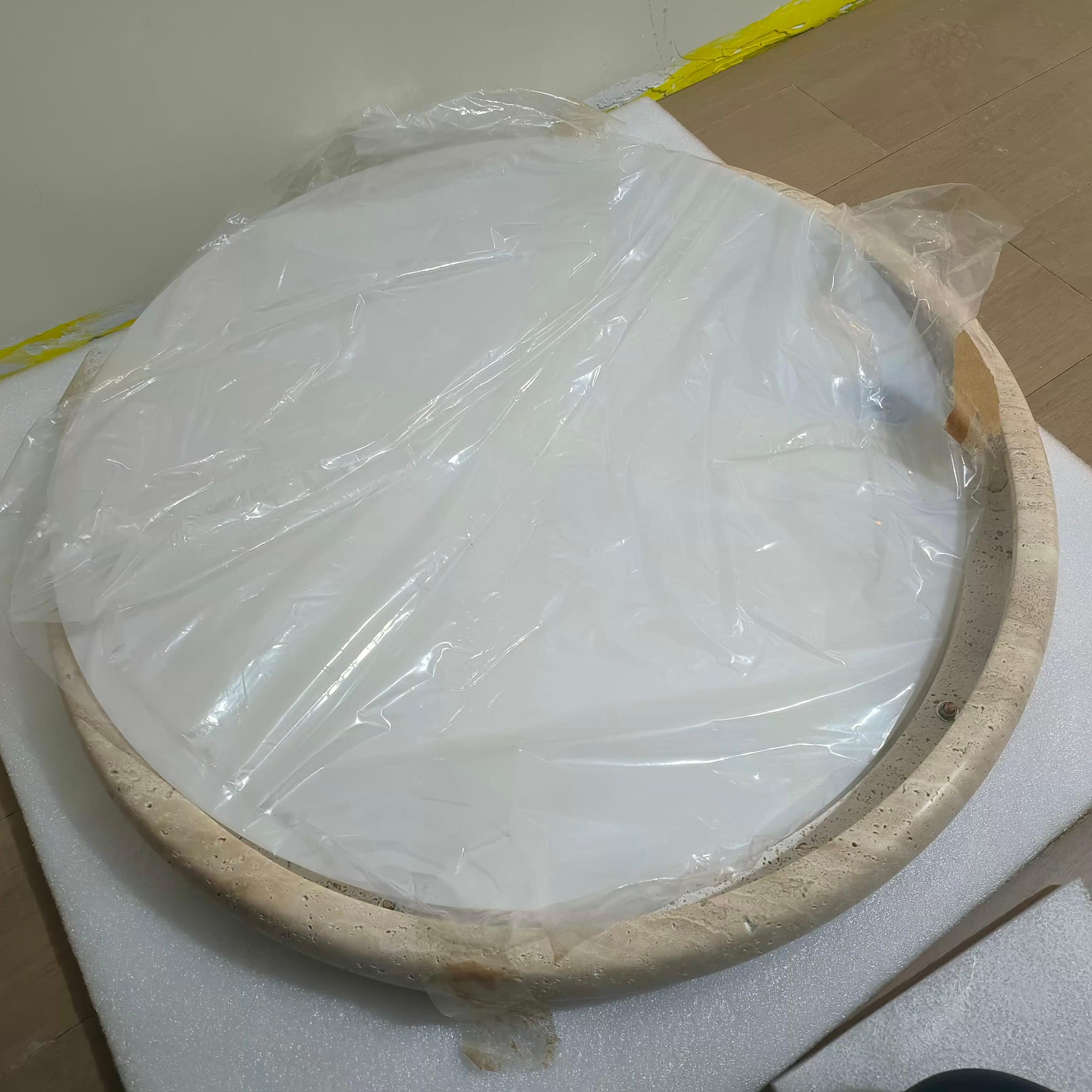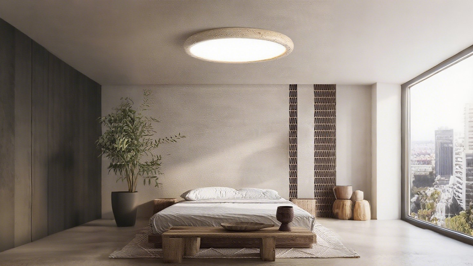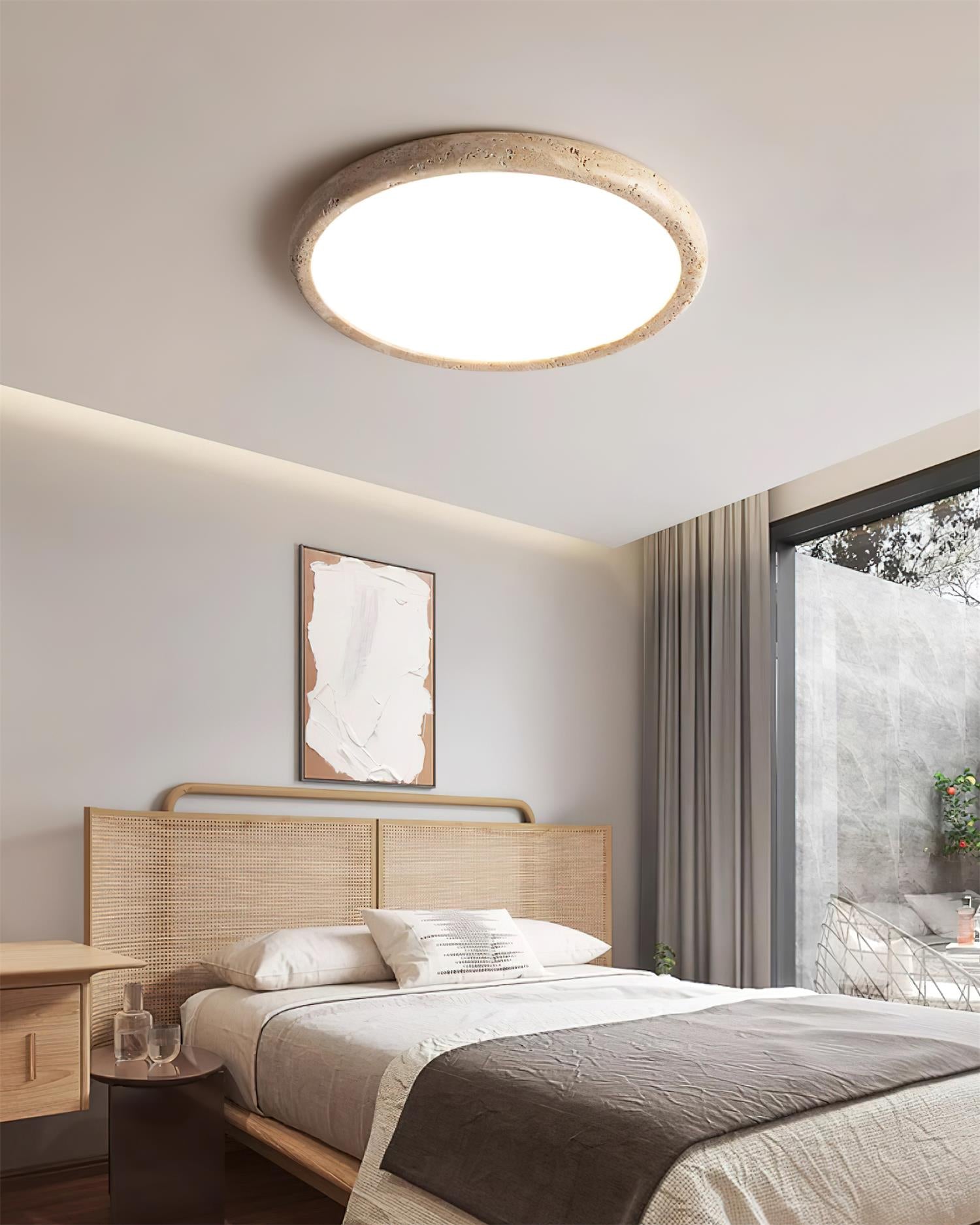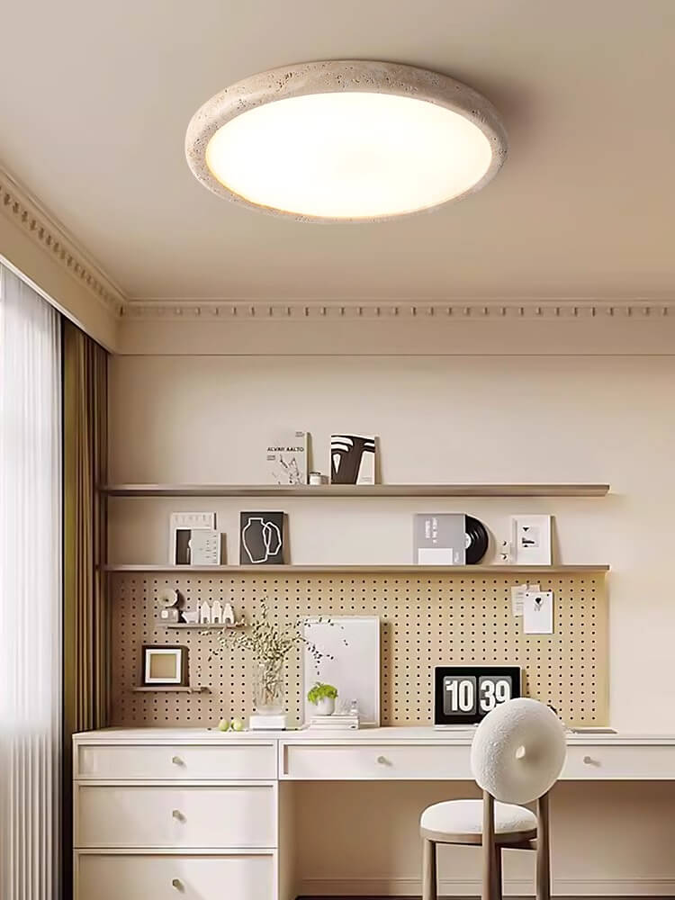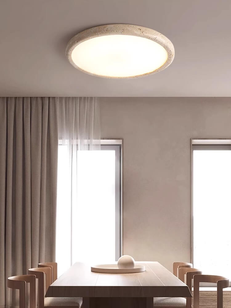Discover our Modern Travertine Frisbee LED Ceiling Light! Shaped like a flying disc, it features light beige travertine. This Japanese - style round fixture emits a warm beige light, perfect for bedrooms, dining rooms, and living rooms. It combines aesthetic appeal with energy - efficient LED tech.
