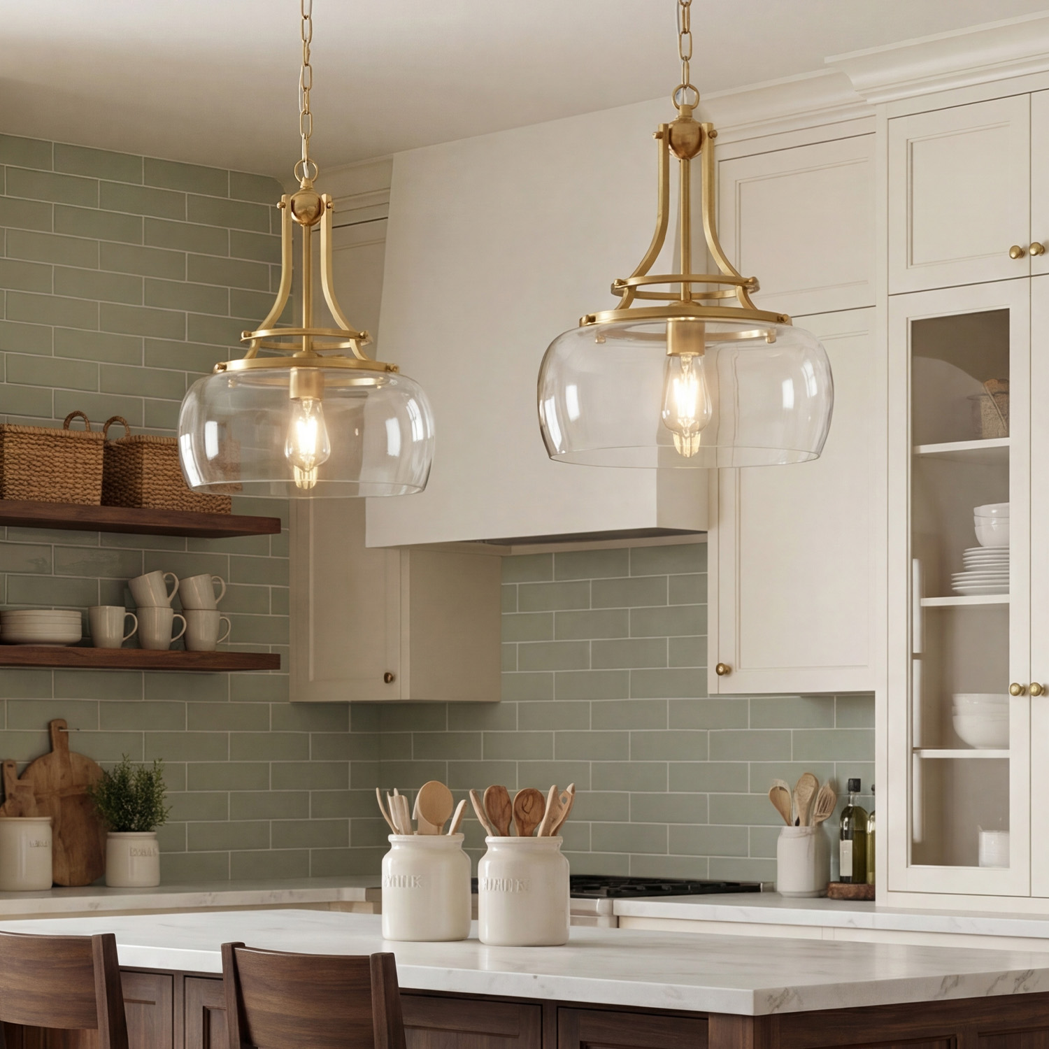 Thalys Brushed Gold Clear Glass Shade Pendant Light