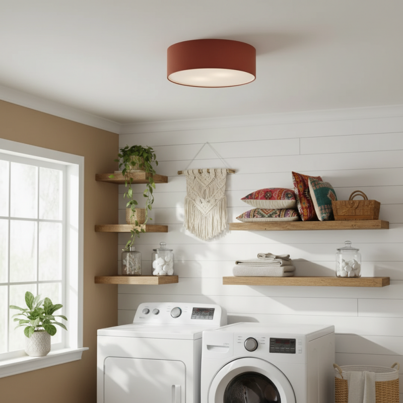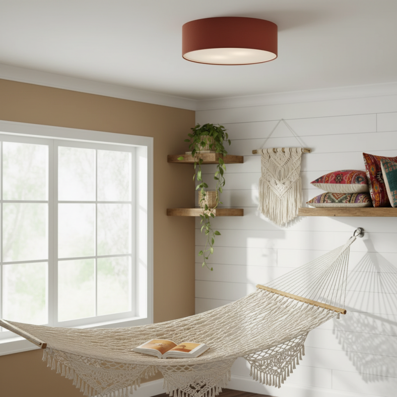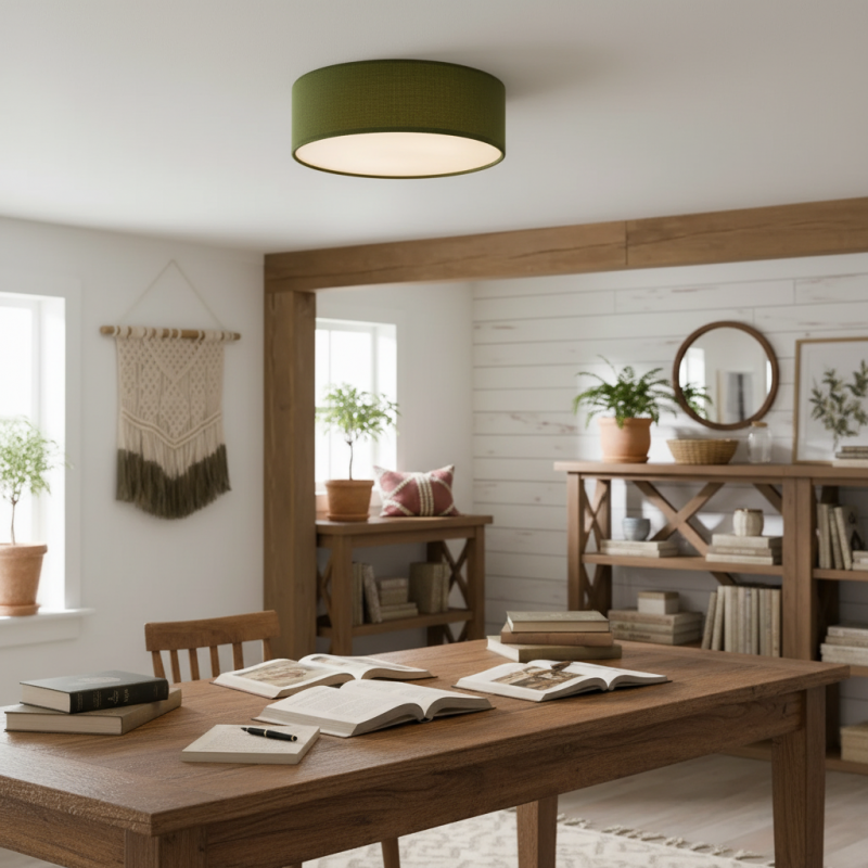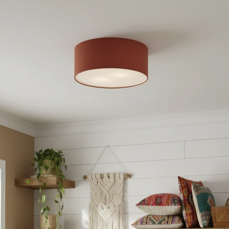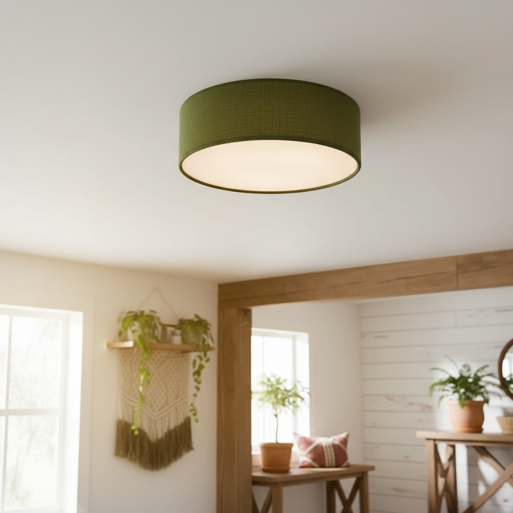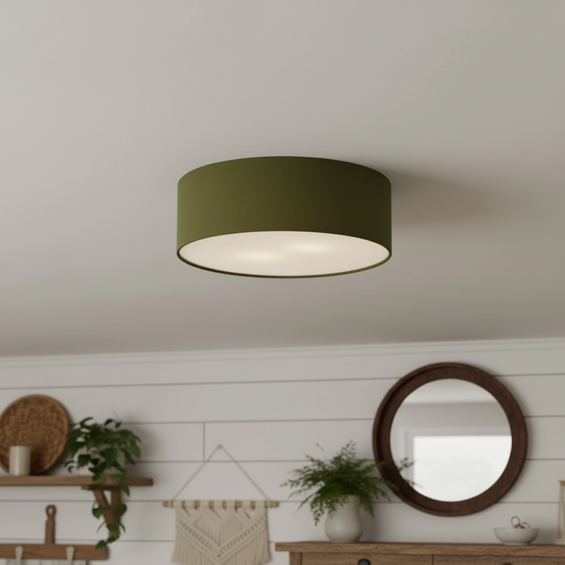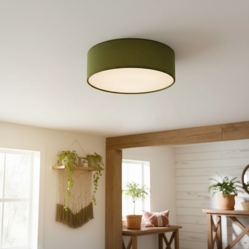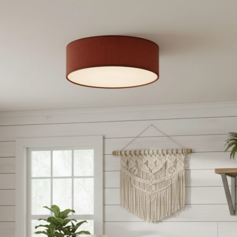 Add effortless elegance with this linen drum flush mount ceiling light. Featuring a sturdy iron frame and soft fabric shade, it delivers a warm, diffused glow. Its semi-flush design is perfect for low ceilings while bringing modern sophistication to bedrooms, living rooms, hallways, and entryways.