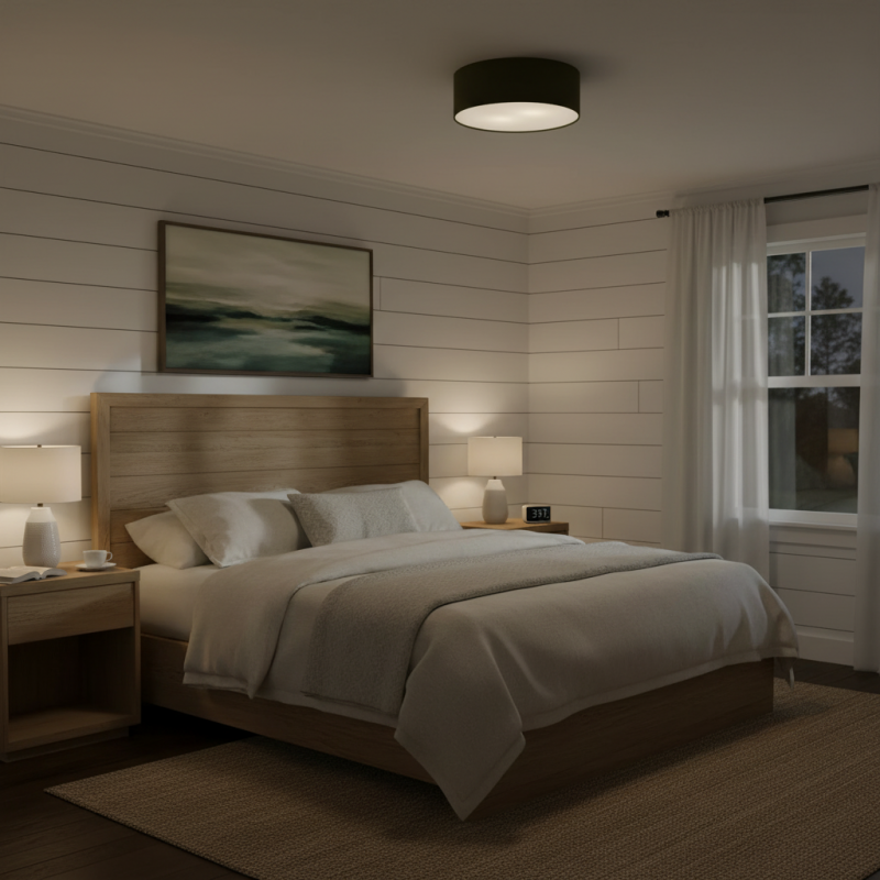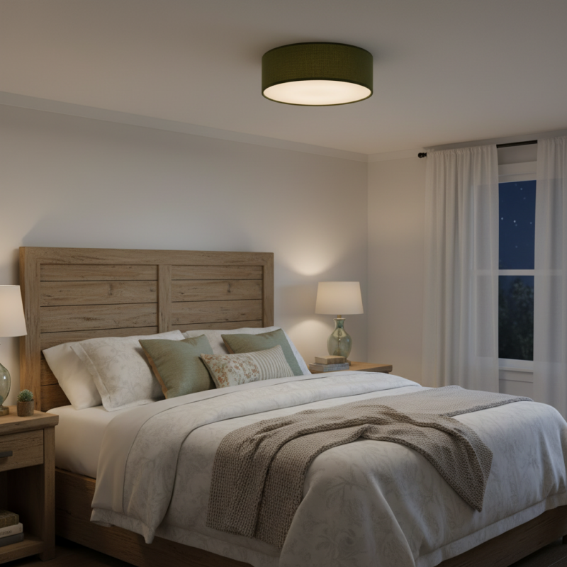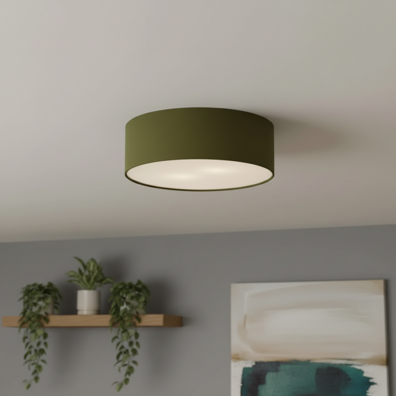 Modern Linen Fabric Drum Flush Mount Ceiling Light