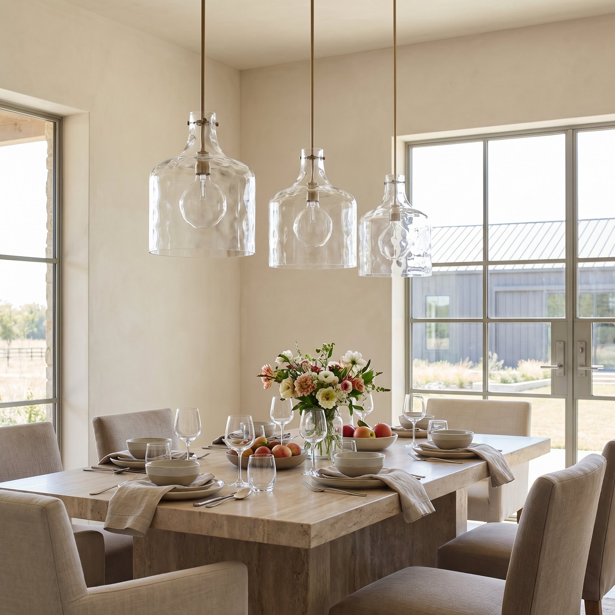 Enhance your home with our Minimalist Water Ripple Glass Pendant Light. This pendant features a unique ripple glass design, available in brass, bronze, brushed nickel, and matte black finishes. Ideal for kitchens, bedrooms, and living rooms, it offers a warm, diffused light. A stylish and versatile addition to any room.