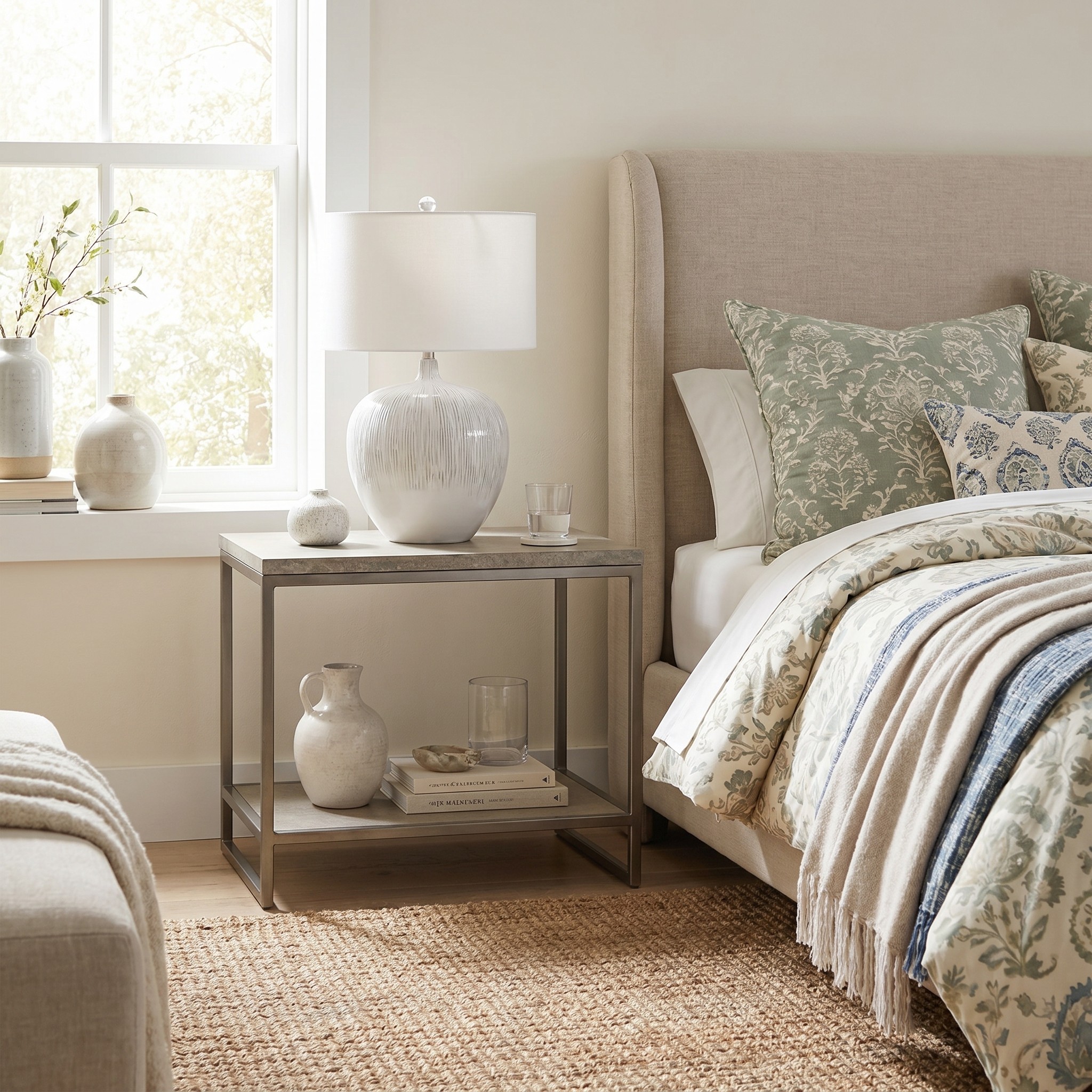 The Rustic Ceramic Pot Table Lamp, a blend of rustic charm & modern style. Available in Earth Grey & Vintage Beige, it features retro patterns & a tapered linen shade. Perfect as a living room, nightstand, or bedside lamp.