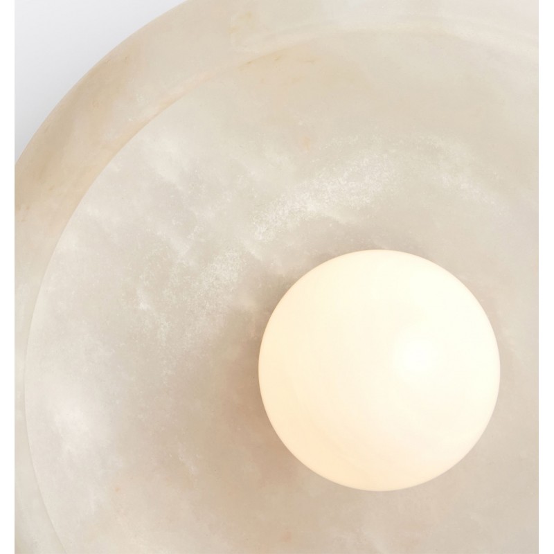 Designed to resemble a pearl nestled within a bowl, this sophisticated fixture features a smooth, curved shade crafted from either luxurious natural alabaster or high-quality glass. The semi-translucent material diffuses light beautifully, creating a soft, ambient glow that enhances any space with a warm and inviting atmosphere.