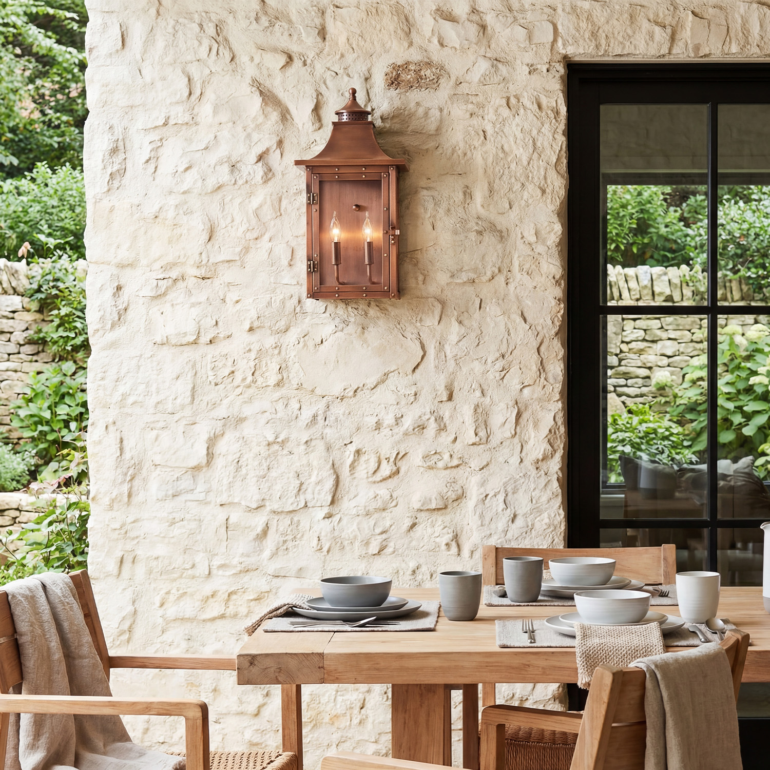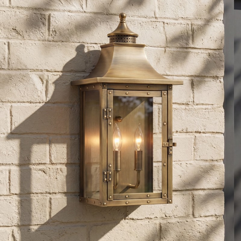 Orynth Vintage Solid Brass Wet Rated Lantern Sconce