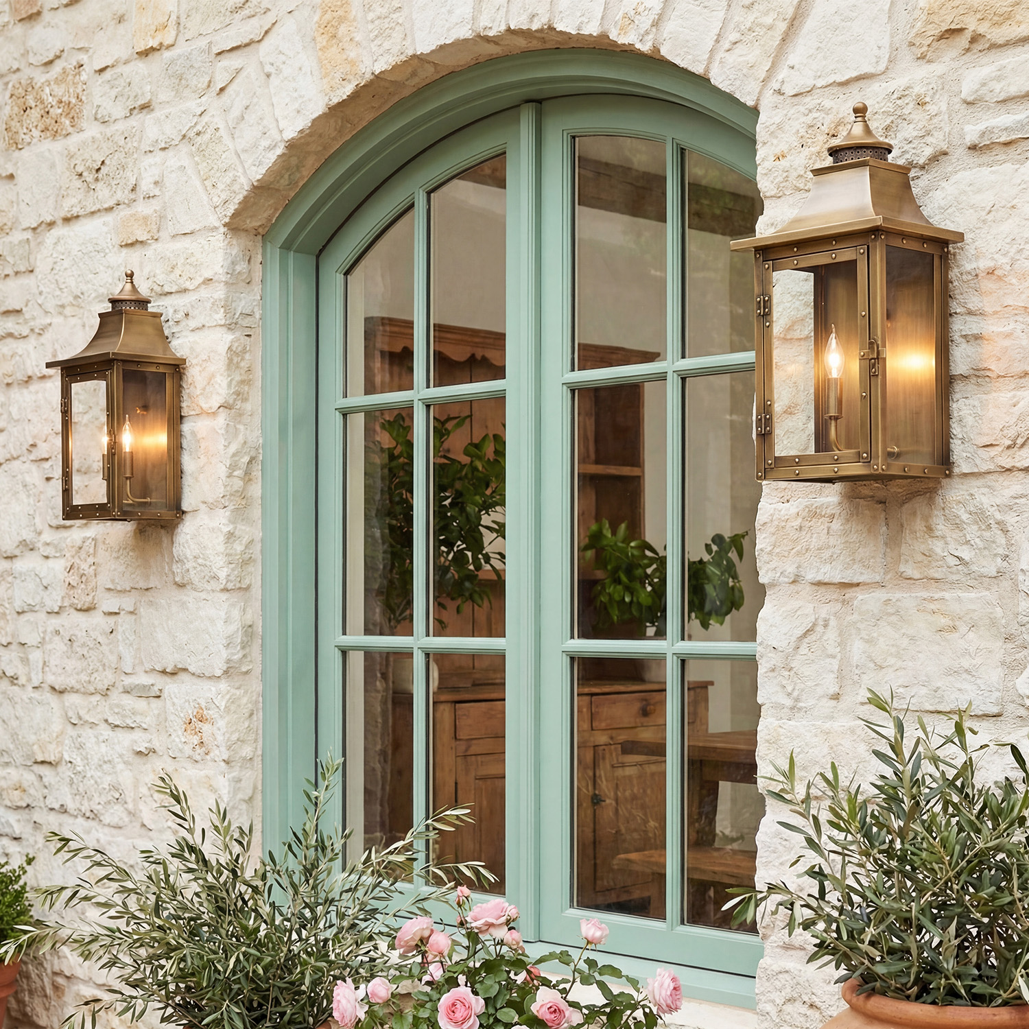Vintage Solid Brass Wet Rated Lantern Sconce