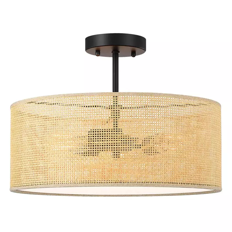 Zaylen Farmhouse Rattan Semi Flush Mount Ceiling Light